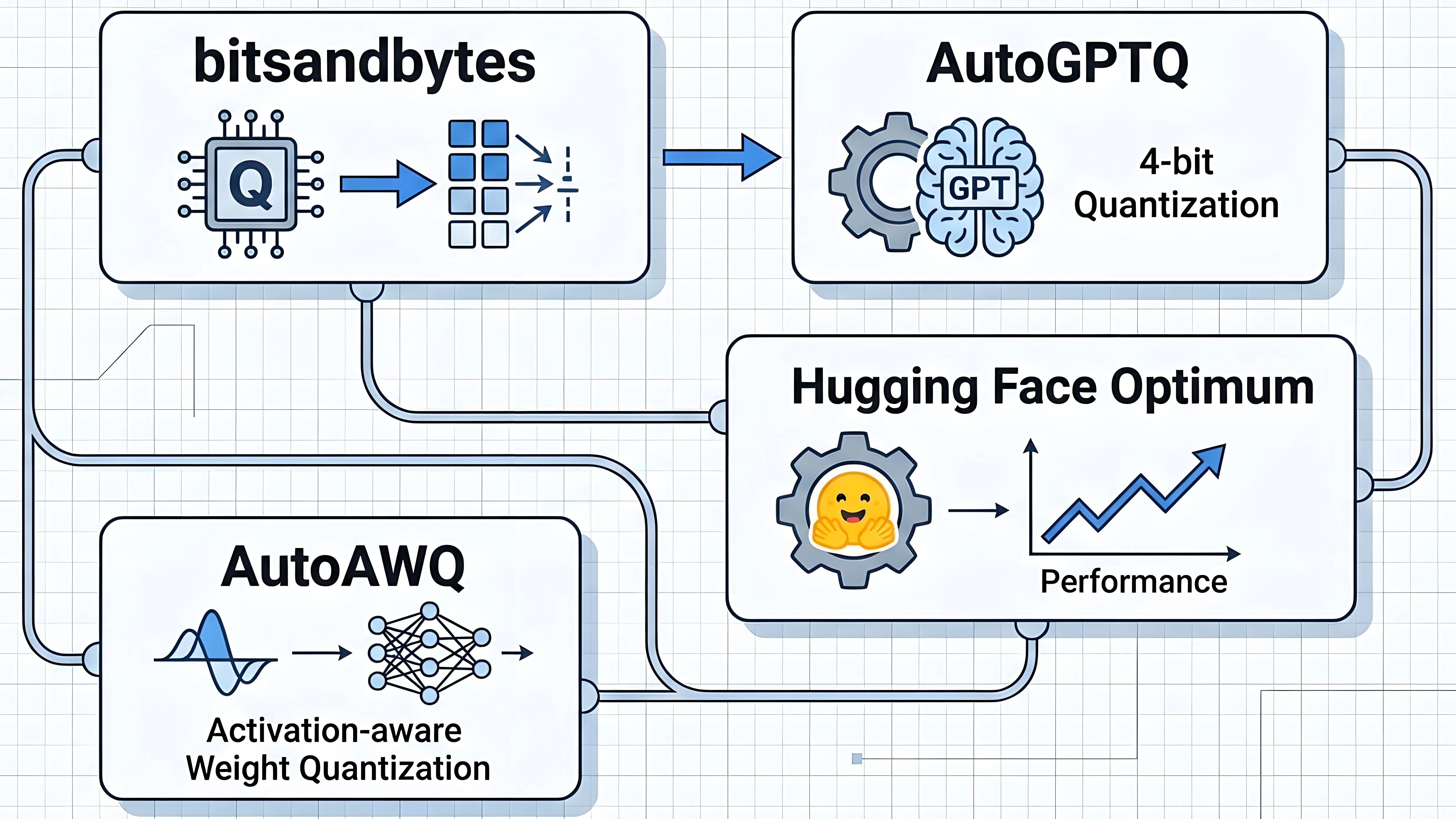 - 原理:PTQ是指在模型训练完成后,对权重或激活进行量化。可以理解为模型已经训练好了,然后再用更少的比特表示数据,以减少存储和计算成本。