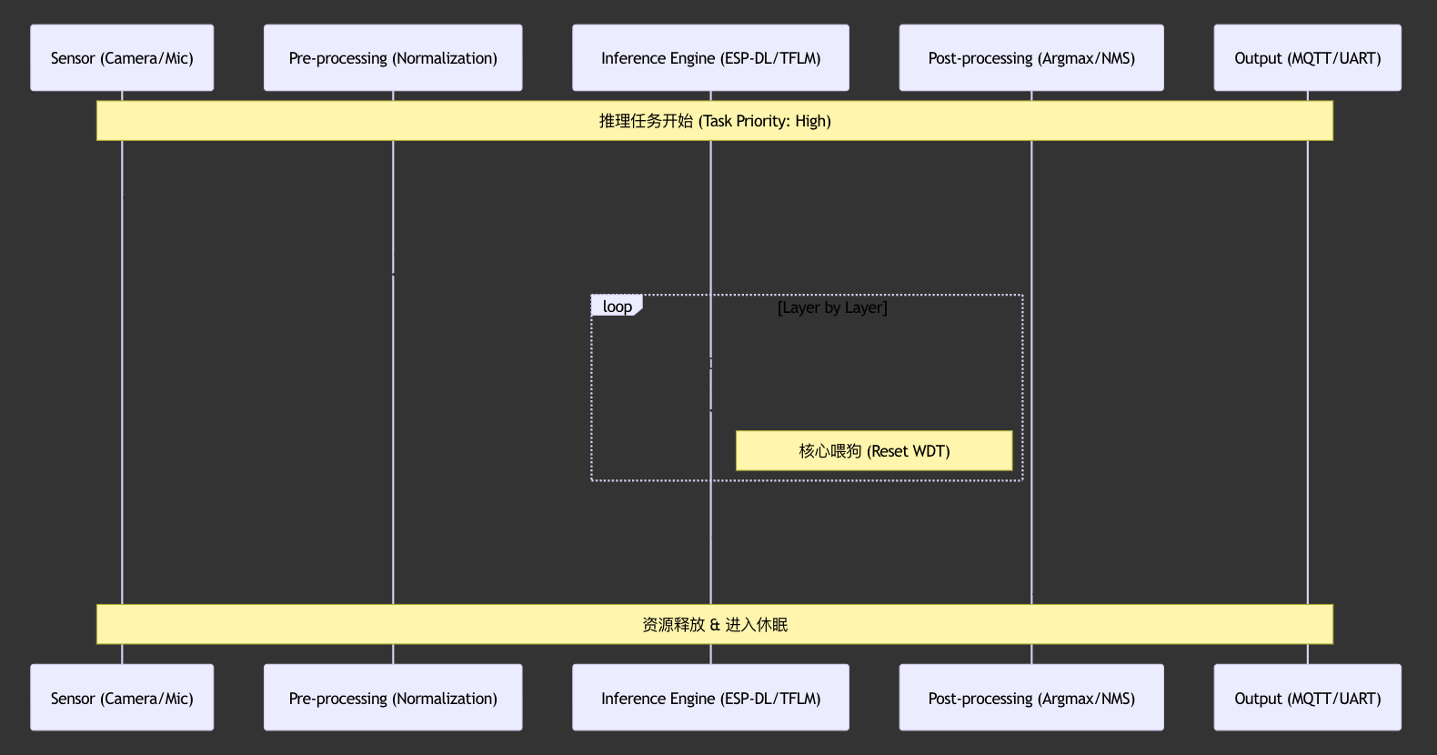 一个健壮的端侧推理流程必须考虑到异常处理与看门狗(WDT)重置问题。在 MCU 上运行推理是极其消耗 CPU 时间的操作,如果处理不当,会触发系统重启。