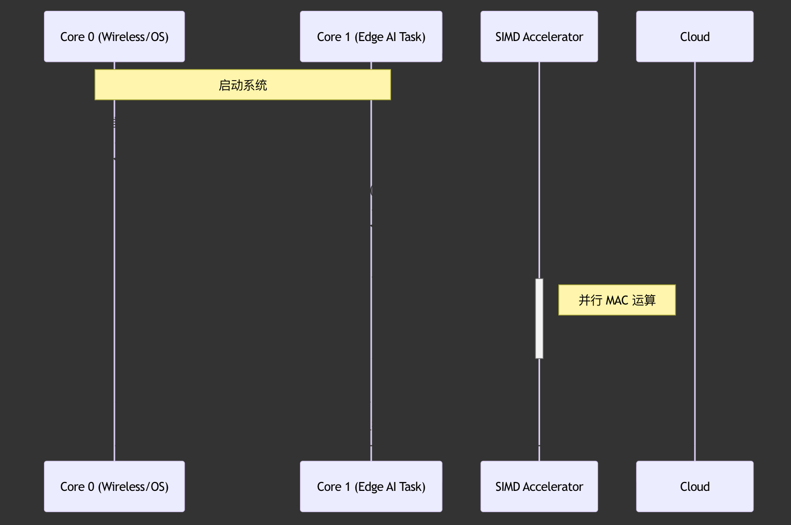 - Core 1 (Application Core):运行 AI 推理任务、信号预处理(FFT/滤波)。
