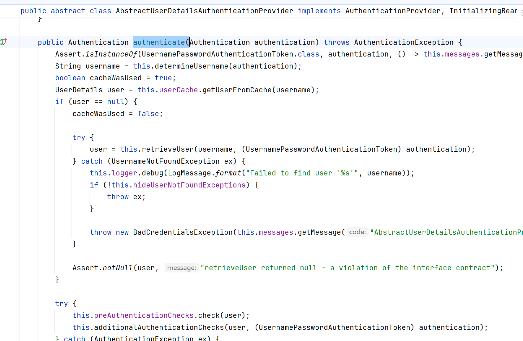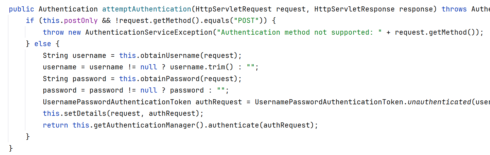Spring Security会执行loadUserByUsername方法来实现认证逻辑。