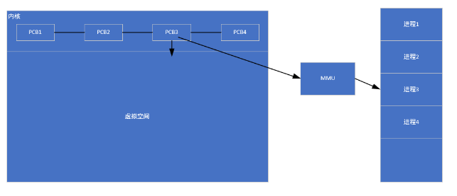 - 进程2执行时MMU将进程2的物理地址空间映射到虚拟地址空间中