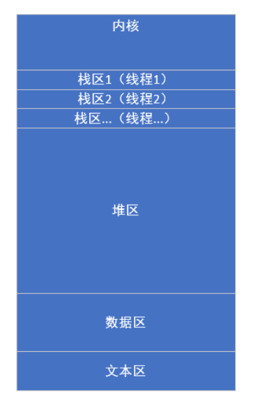 - 线程空间位于进程空间内部,独享栈区(每个线程栈区独立), 共享文本区、数据区、堆区、(一个进程中的多个线程共用上述区域)