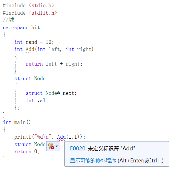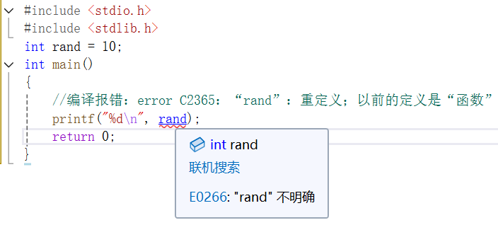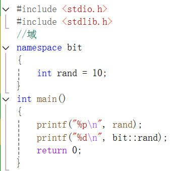 printf函数访问的是全局域中rand函数,而非命名空间域中的rand变量