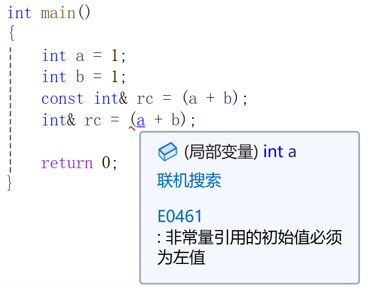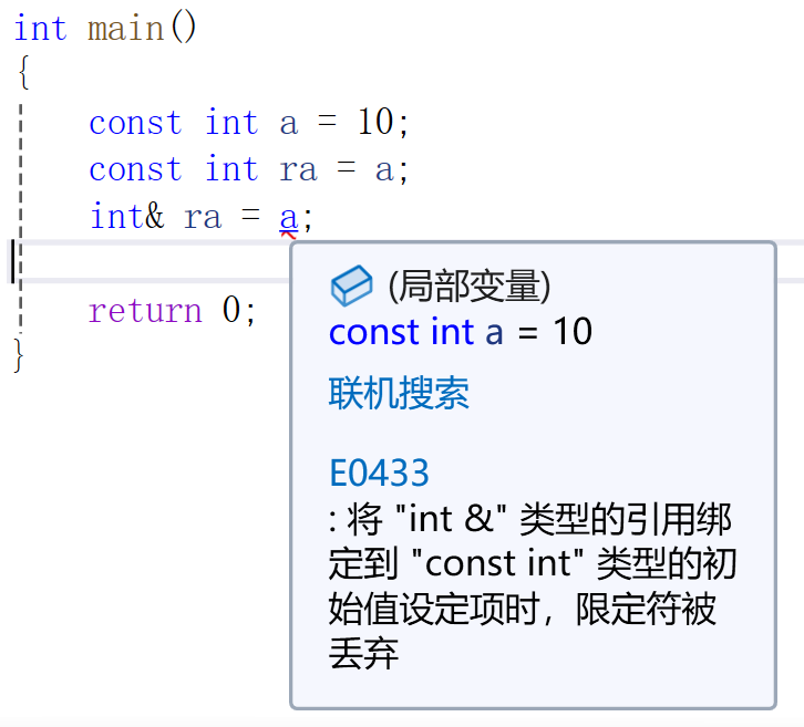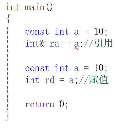 如果一个变量被const修饰,那么就必须要在它的引用前加const