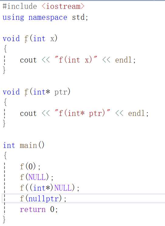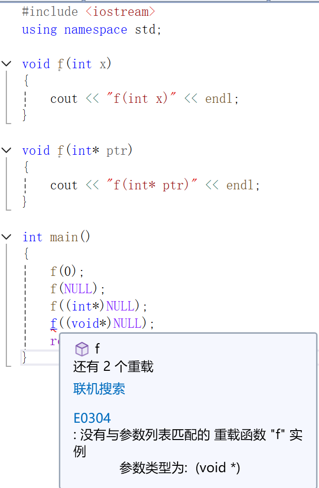 如果想通过f(NULL)调用指针版本的f(int* ptr)函数