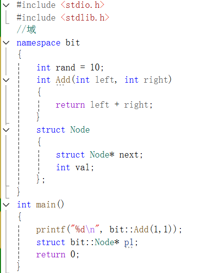 namespace + 命名空间的名字,{}内为命名空间的成员