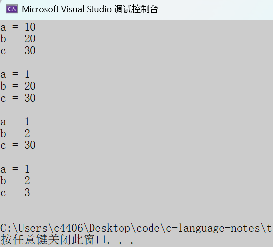 如果在main函数中打印,则会优先打印main函数中的变量a