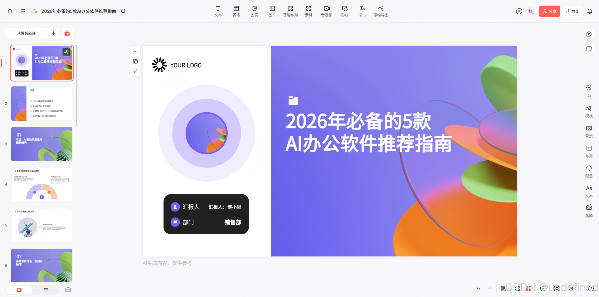 结果:获得一份既有逻辑深度(AI文本优化),又有视觉美感(AI排版引擎)的演示文稿。
