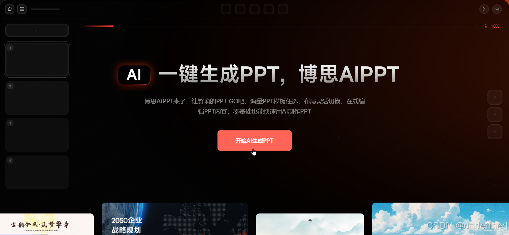 访问博思AIPPT首页:打开浏览器,进入博思AIPPT工作台