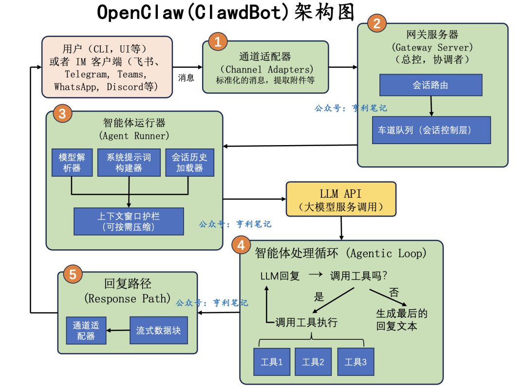 OpenClaw是一个开源的本地部署AI助手,能接管机器权限完成复杂任务。文章详细拆解了其五层技术架构:通道适配器、网关服务器、智能体运行器、智能体处理循环和响应路径,展示了如何将大模型推理与系统操作结合。OpenClaw通过Telegram等聊天工具作为指挥部,系统终端为执行层,实现全天候自动化服务。尽管安全性和稳定性有待提升,但已成为智能体方向的标杆,值得研究和借鉴。