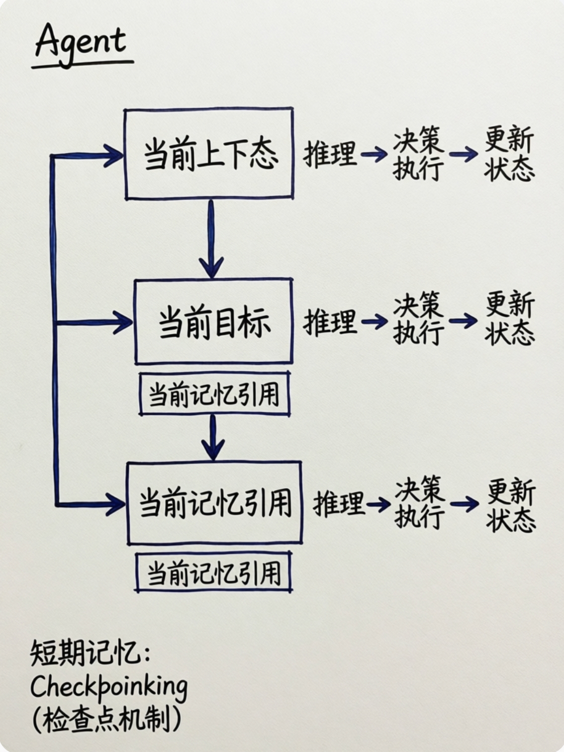 - 状态 = 当前上下文 + 当前目标 + 当前记忆引用