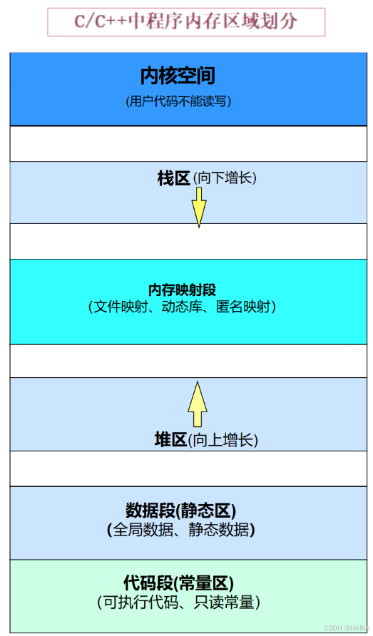 见下图:想自测的小伙伴可以看下述的题:代码语言:javascriptAI代码解释A.栈 B.堆 C.数据段(静态区) D.代码段(常量区)globalVar在哪里?____ staticGlobalVar在哪里?____ staticVar在哪里?____localVar在哪里?____ num1 在哪里?____ char2在哪里?____pChar3在哪里?____ ptr1在哪里?____