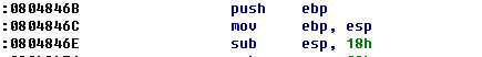 前3行是将ebp压入栈,然后将当前的esp转移到ebp,再将esp减去0x18