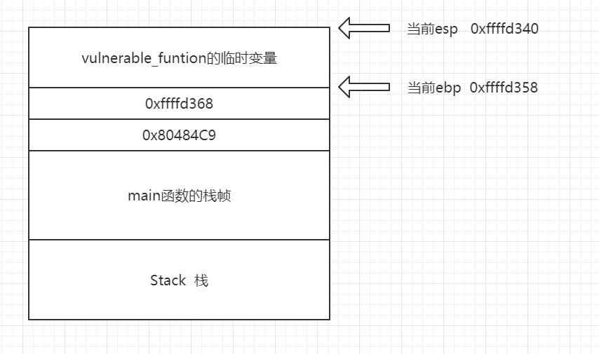 这个是一开始停在call vulnerable_function那里的栈的大概示意图