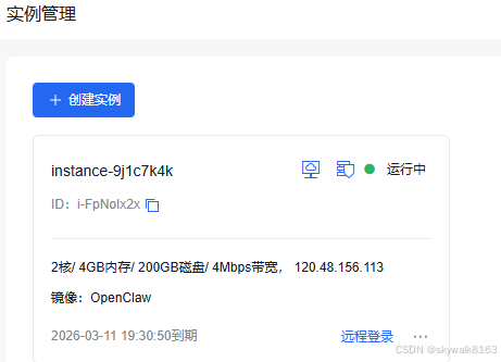 这样一台轻量服务器就启动了,而且已经安装好OpenClaw了。