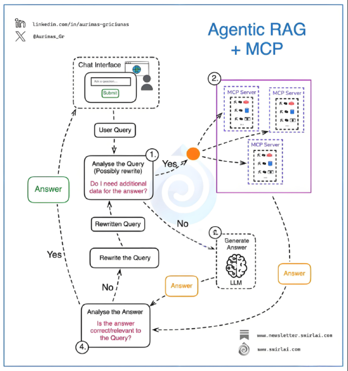 RAG和MCP不仅分别突破大模型的静态知识边界与模态壁垒,二者结合更能激发显著的协同增强效应: