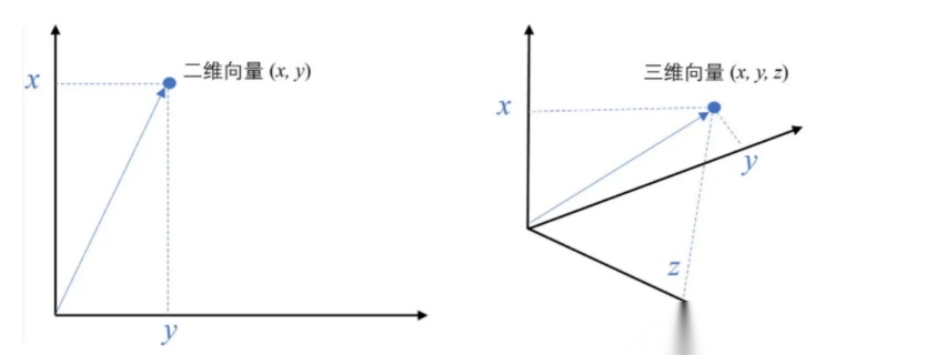例如,⼆维空间中的向量可以表示为 (𝑥,𝑦),即表示从原点 (0,0) 到点 (𝑥,𝑦) 的有向线段