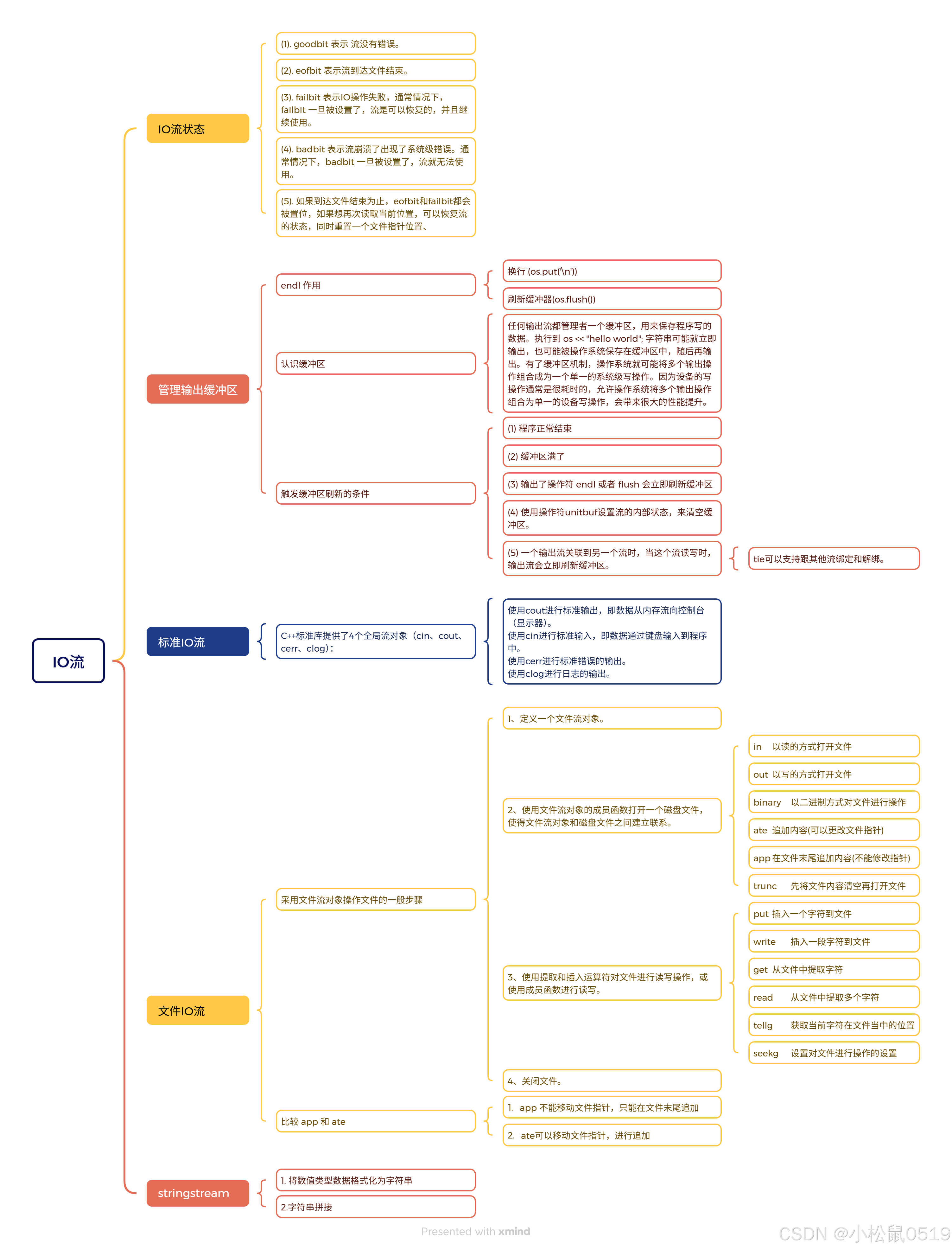 本文主要介绍了C++中的IO流相关知识,包括标准IO流、文件IO流和string IO流。首先讲解了IO流状态的四种标志位(goodbit/eofbit/failbit/badbit)及其处理方法,如使用cin.clear()恢复流状态。其次详细说明了输出缓冲区的管理机制。在文件操作方面,介绍了二进制和文本文件的读写方法,比较了app和ate模式的区别,并指出了二进制读写中string成员可能导致