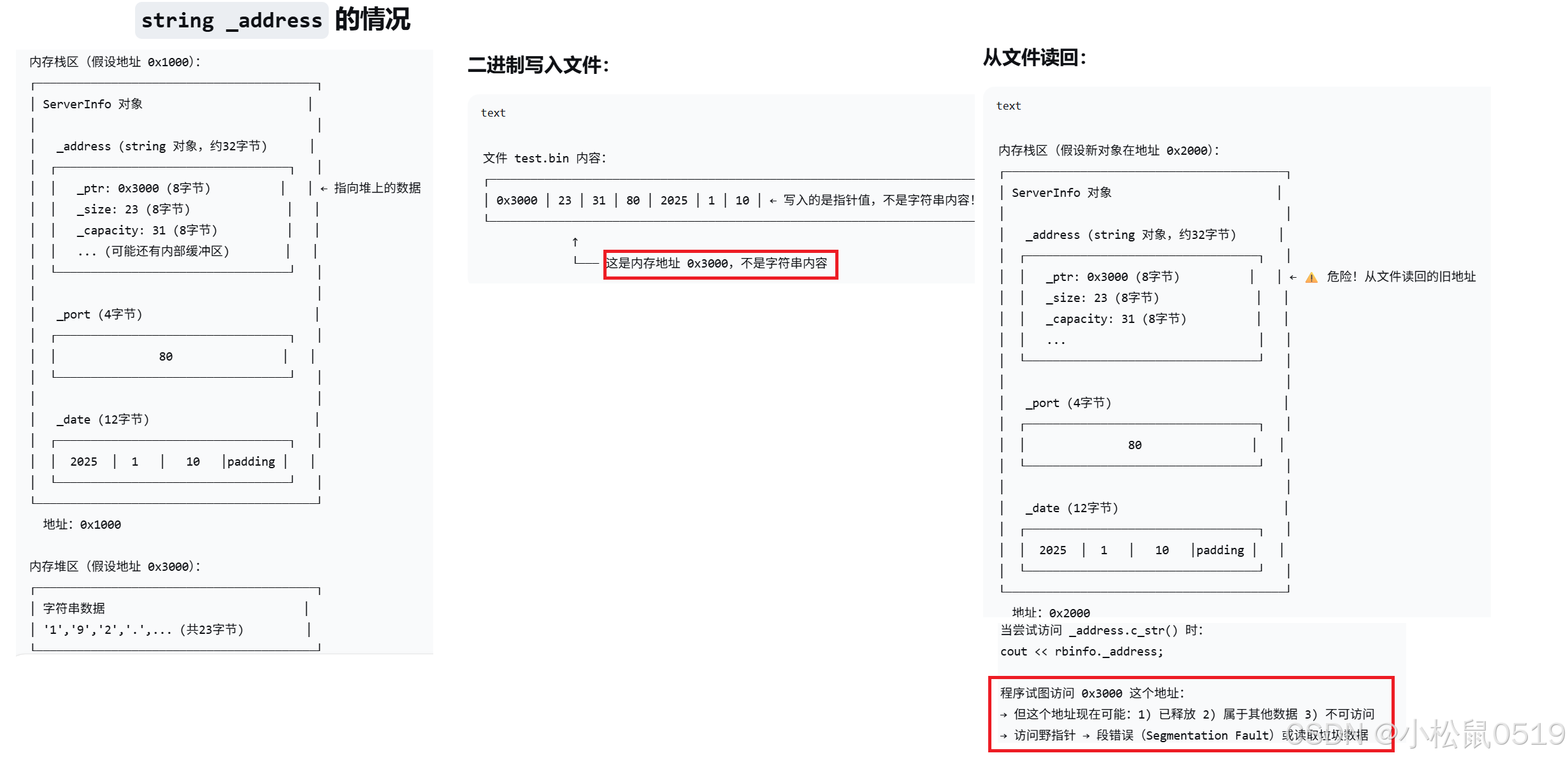 二进制读写浅拷贝:原始数据可能已经销毁,留下野指针。