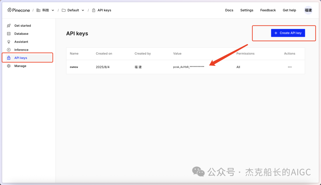 Pinecone Vector Stor节点是需要上他的平台上获取API密钥的,打开网址:https://www.pinecone.io/
