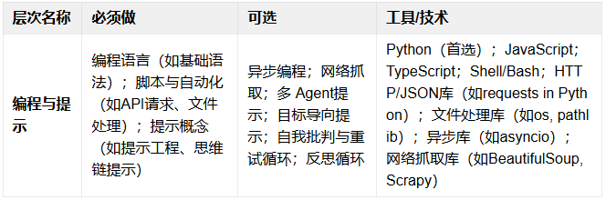 任何AI Agent开发从此处开始。Python仍是首选语言,JavaScript/TypeScript使用也在增加。除基础编程能力,提示工程是关键技能。