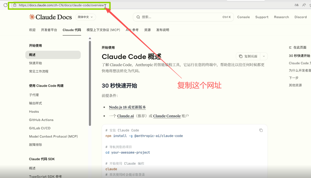 然后直接在它的Agent的对话框粘贴Claude Code的部署文档链接⬇️⬇️