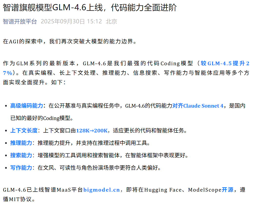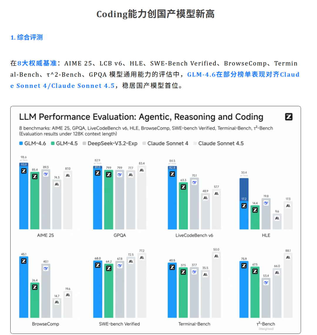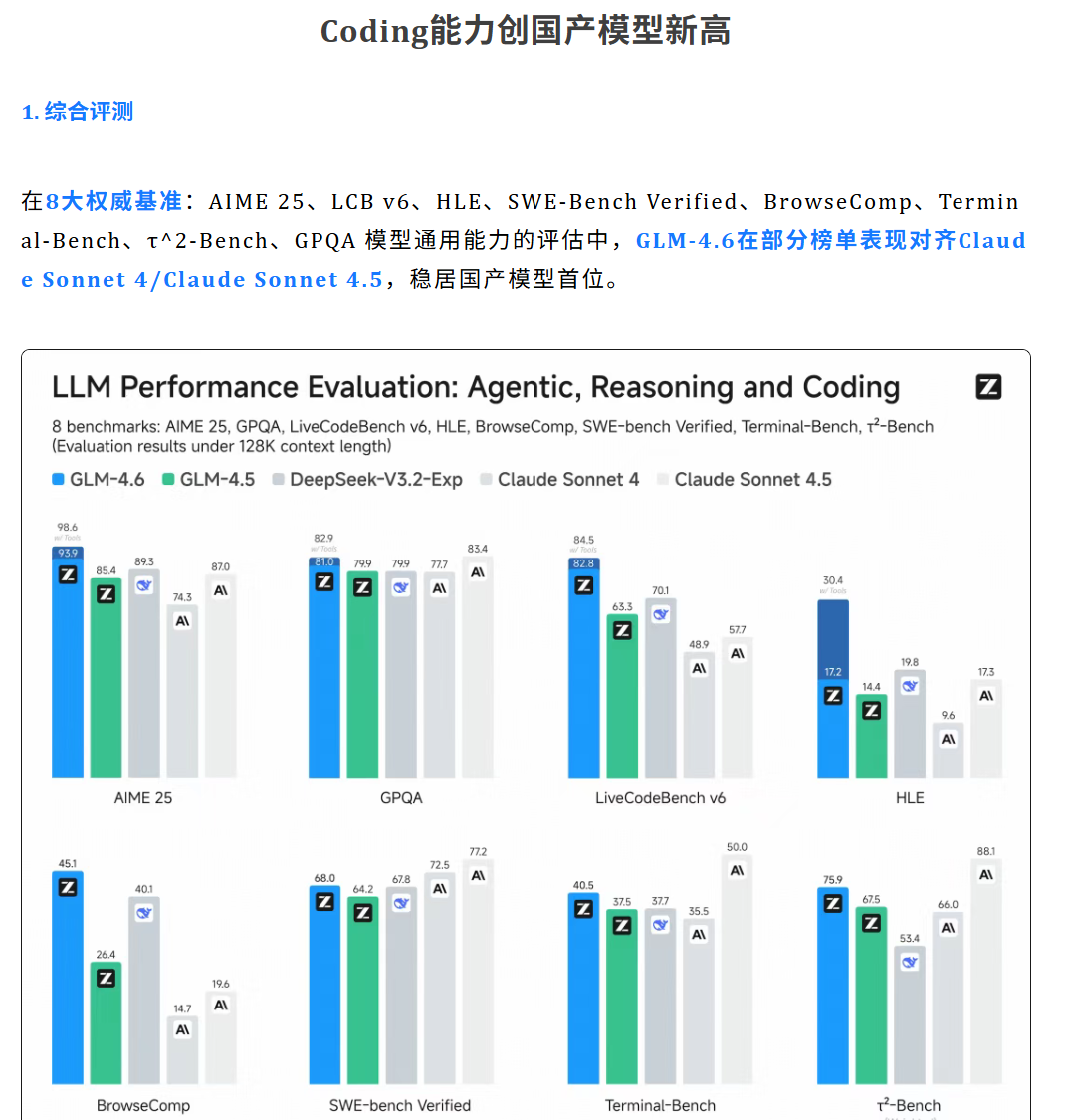 GLM-4.6在8大权威基准榜单表现对齐Claude Sonnet 4/Claude Sonnet 4.5,
