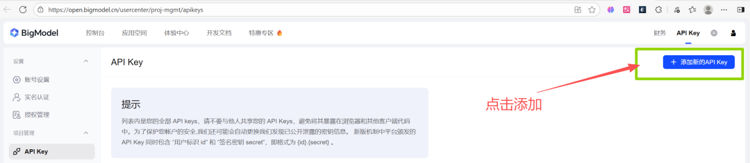 首先,我们去申请一个智谱GLM4.6的API Key⬇️⬇️