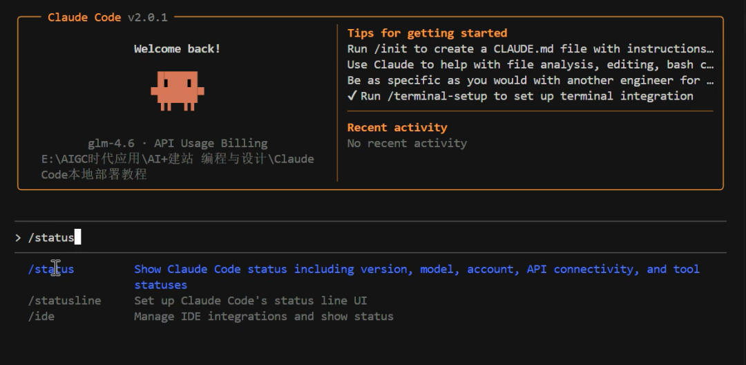 第一次进入选择好默认模式一顿Enter确认,紧接着我们输入/model 或/status,再Enter一下: