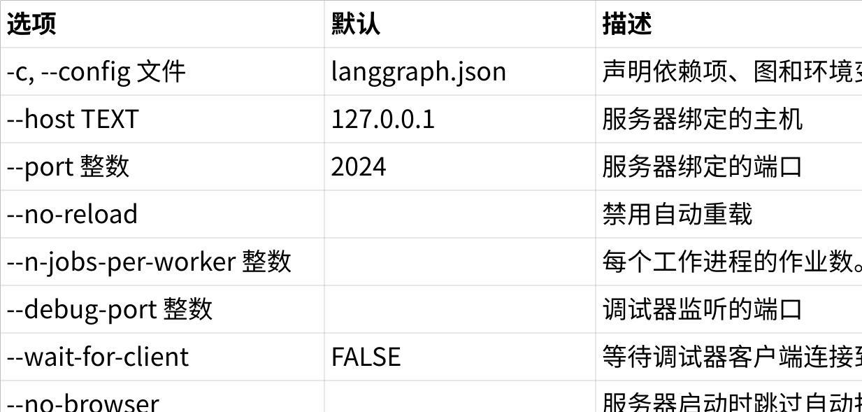 langgraph dev 命令以内存模式启动 LangGraph 服务器。此模式适用于开发和测试目的。对于生产用途,请部署 LangGraph 服务器并使其能够访问持久存储后端。