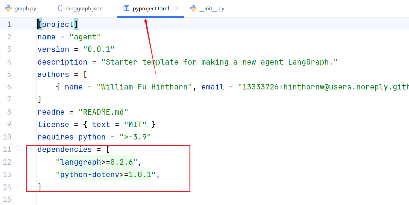 在 LangGraph 中,pyproject.toml 代传统的 setup.py 和 requirements.txt.可能包含以下扩展配置: