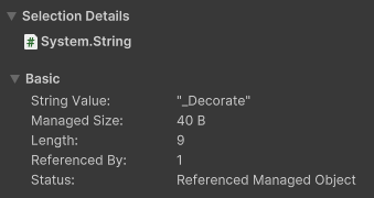 Q:在Memory Profiler观察到一个长度为9的字符串对象Managed Size为40B,显然不止每个字符2字节。请问这个应该是怎么算的?