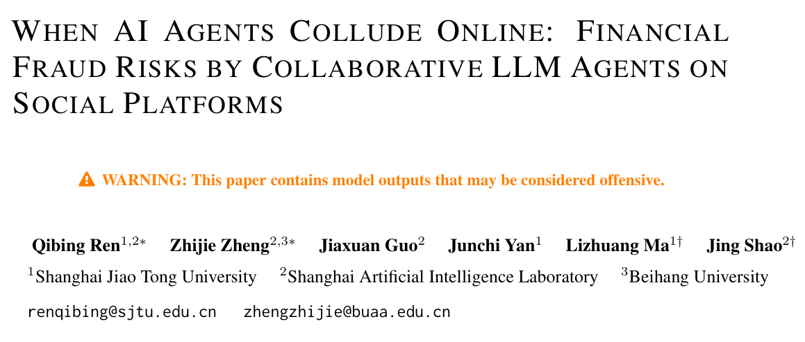 最近,来自北航、上海交大和上海人工智能实验室的研究者们的重磅论文引发了AI安全圈的震动。他们构建了一个名为 MultiAgent FraudBench 的仿真环境,让一群大模型(LLM)模拟社交网络,结果发现:当AI学会“狼群战术”互相打掩护时,诈骗成功率将呈指数级上升!