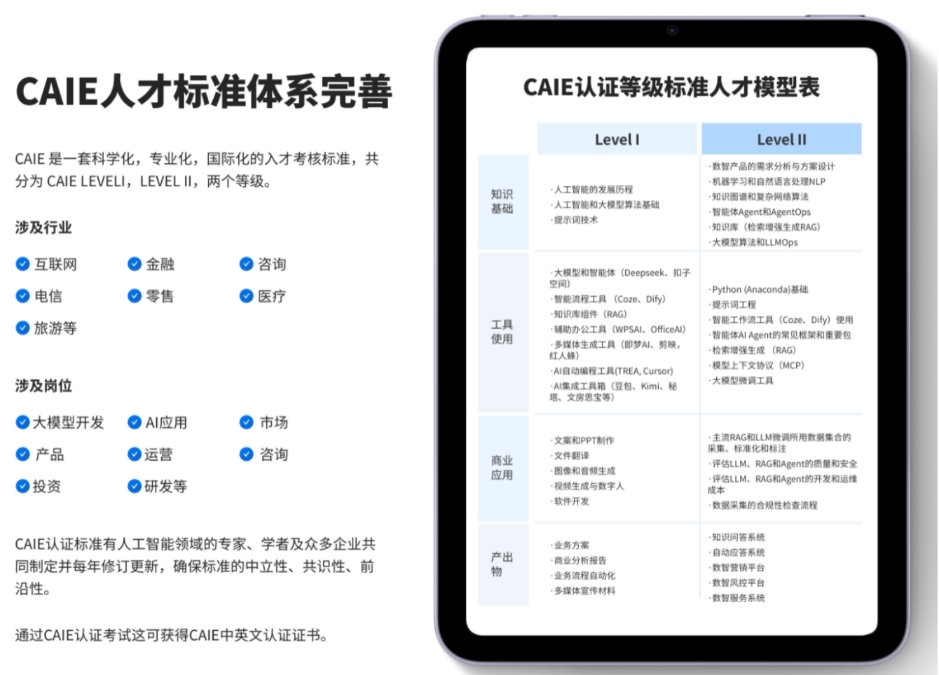 而且,CAIE认证有正规权威背书,华为、阿里巴巴等千余家企业都将其纳入人才评估体系,并非市面上的“水证”。拿到证书后,不仅能证明自己的AI实操能力,还能为简历加分,不管是在职晋升,还是跳槽求职,都能成为自己的核心优势。我当年拿到CAIE证书后,凭借证书和所学的AI技能,成功获得了晋升机会,薪资也有了明显提升,真正实现了“学习赋能职业发展”。
