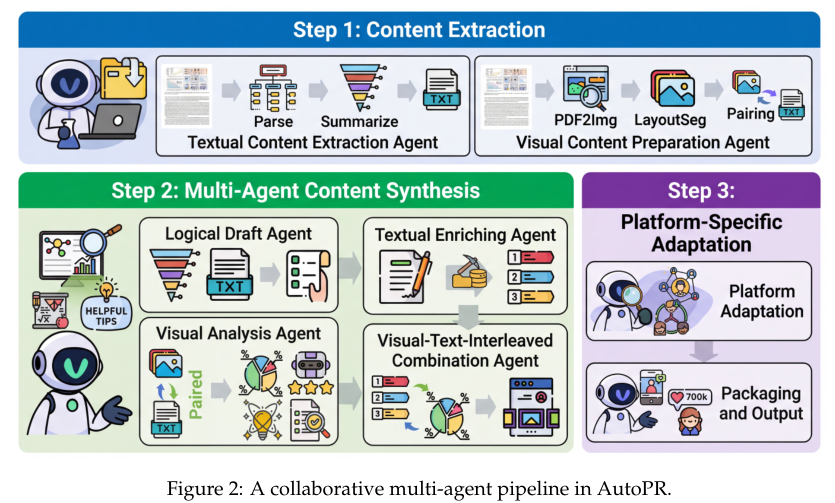 以 AutoPR 为例,这是一个帮助学者将论文转化为社交媒体推广内容的系统。