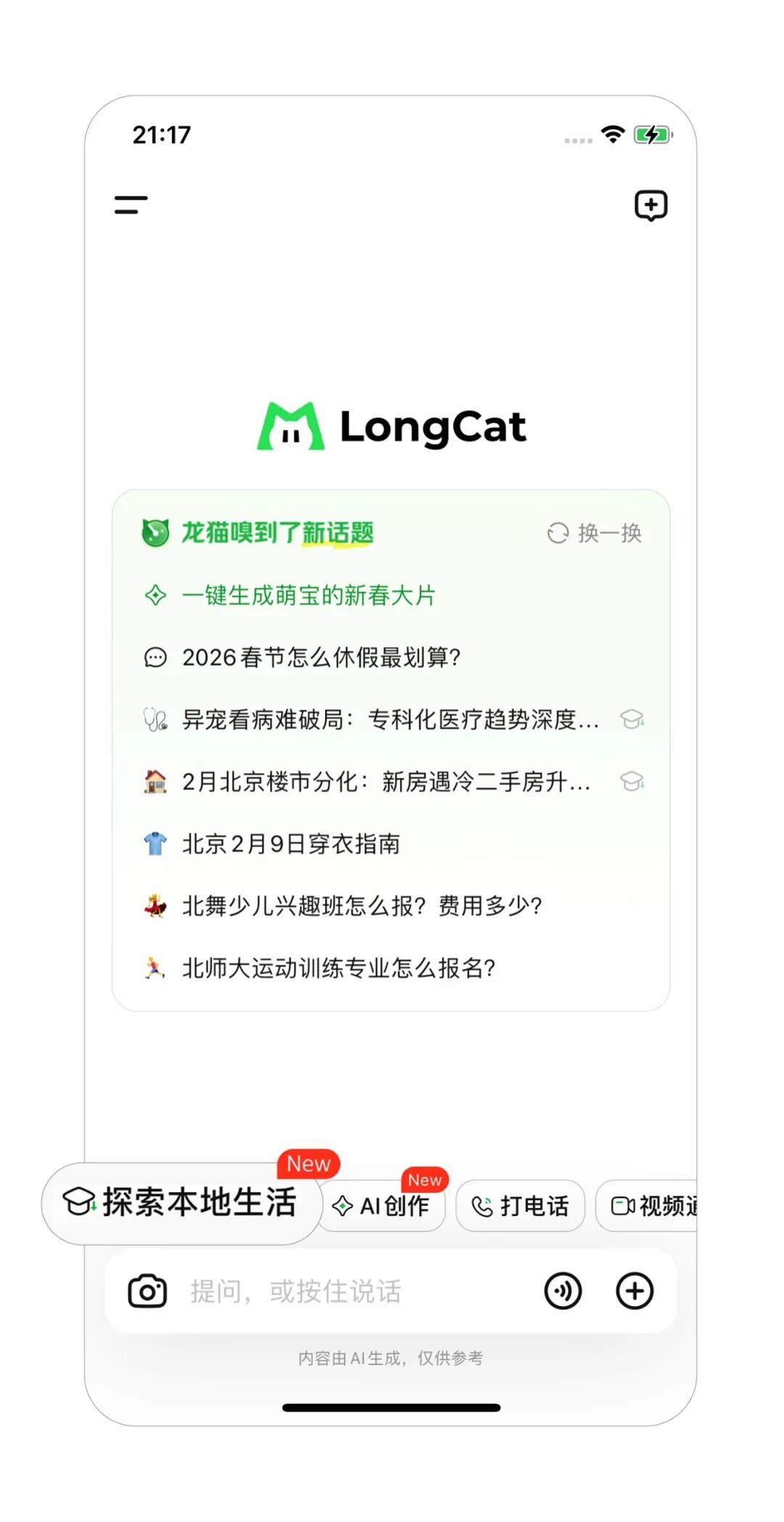 真正理解现实世界,能解决问题的 AI 原来是这样。不得不说,在大模型技术逐渐成熟的当下,LongCat 面向实用化发力的方法让我们看到了一个 AI 落地的新解法:在模型架构之外,把 AI 能力充分嵌入已有生态,能够产生前所未有的能力。通过连接供给丰富、反馈真实的本地生活网络,AI 大模型可以精准直连用户的需求,提供真实、个性化且实时可用的信息。这两天,LongCat APP 即将上线「探索本地生活
