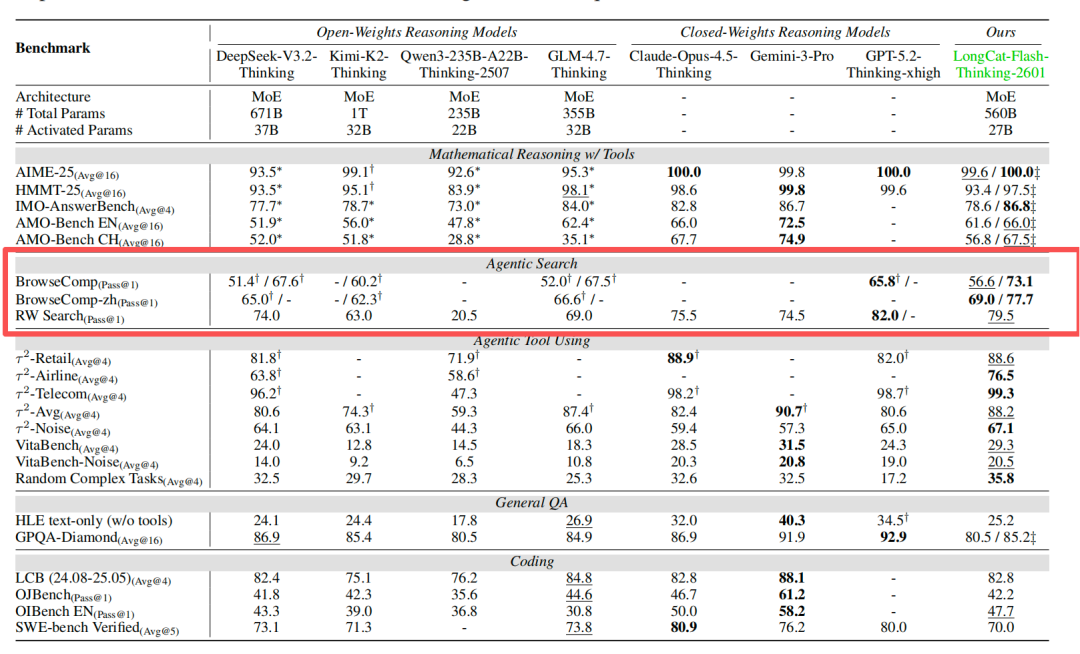 在深度研究能力的背后,是 LongCat 强大的逻辑推理和复杂任务处理能力。