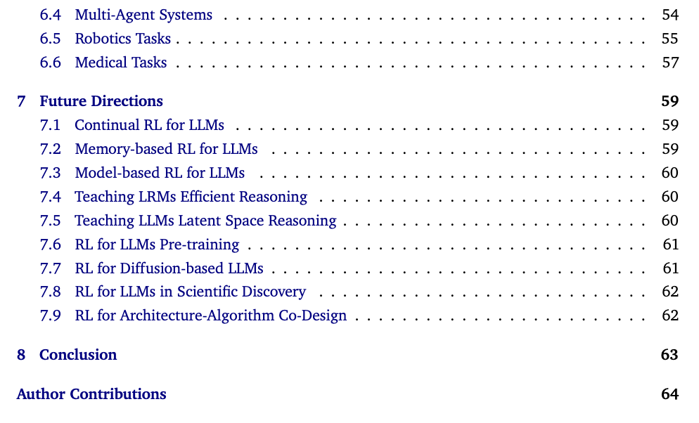 最后,探讨未来 RL for LLM 的研究方向,包括新算法、新机制、新功能以及其他潜在研究路径。