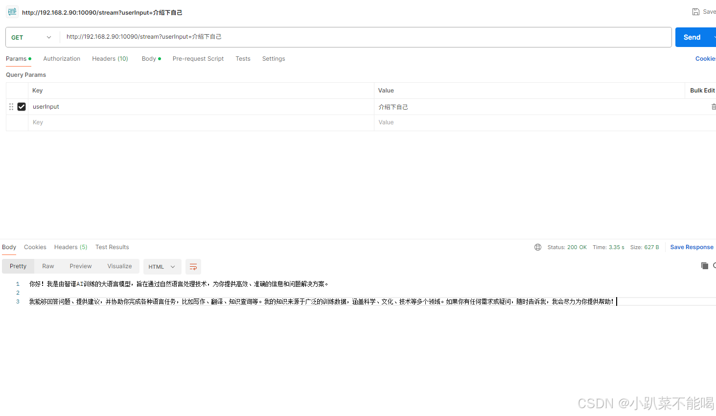 非流式输出 call:等待大模型把回答结果全部生成后输出给用户
