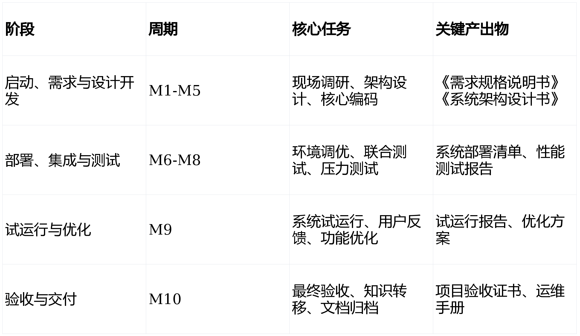 项目总工期10个月,分为四个核心阶段: