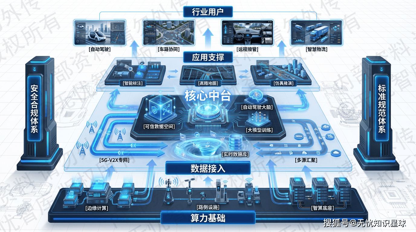 国家"十五五"规划推动自动驾驶向"车路云一体化"转型,某汽车集团构建的智能平台通过边缘计算与可信数据空间技术,实现数据采集、标注、训练到部署的全链路闭环。该平台采用"一底座、一空间、两平台"架构,融合5G-A/C-V2X通信、多源感知预处理、AI自动化标注等核心技术,解决数据孤岛与合规难题。其五层解耦设计确保系统灵活性,高可靠网络架构实现