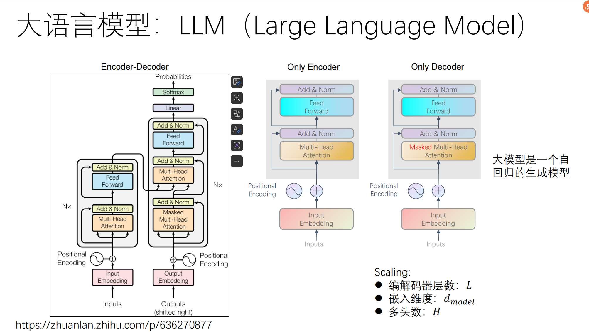 绝对优势:完美契合自回归生成(Autoregressive)的需求——像成语接龙一样,根据前置 Token 预测下一个 Token。事实证明,基于 Decoder 架构在算力和数据不断放大的情况下,能产生强大的涌现能力(Emergent Abilities)。