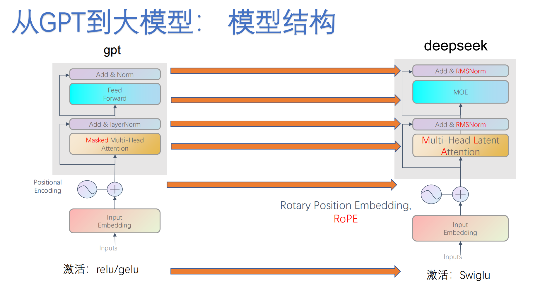 对比了传统 GPT 与最新大模型(如 DeepSeek)在内部组件上的全方位升级,这是算法岗面试的重灾区: