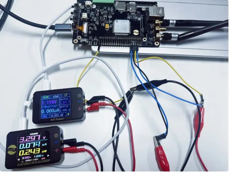 示例教程使用Air8000开发板+两个Air9000P(直流电源)进行演示;外部输入电压在3.6V以内,需要外部电源与模组共地,保持参考电压一致。