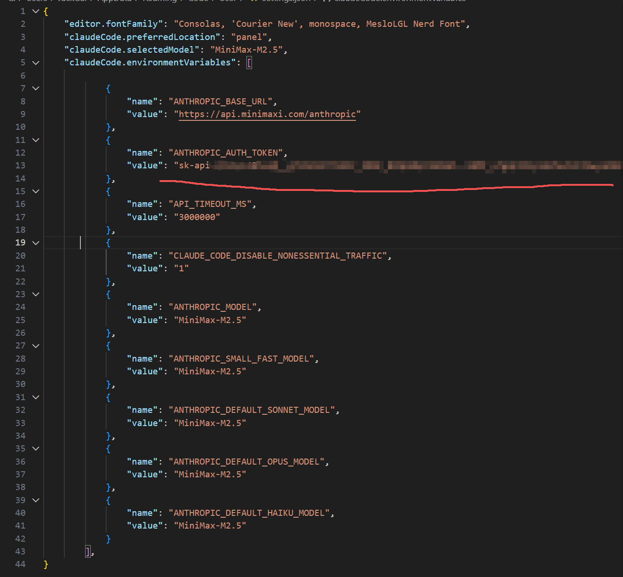如果你想体验 Vibe Coding,推荐在 Claude Code 里安装,比如我使用的是 VSCode + Claude 插件 + MiniMax-M2.5 API。