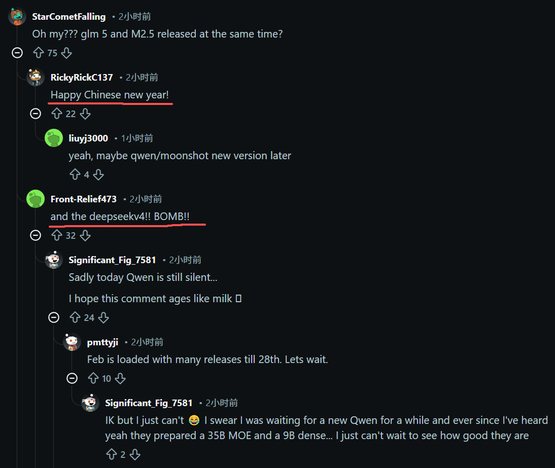 更有意思的是,国外网友这段时间对国内 AI 大模型的更新节奏格外关注,他们甚至把这种争先更新的现象称为:Happy Chinese new year!