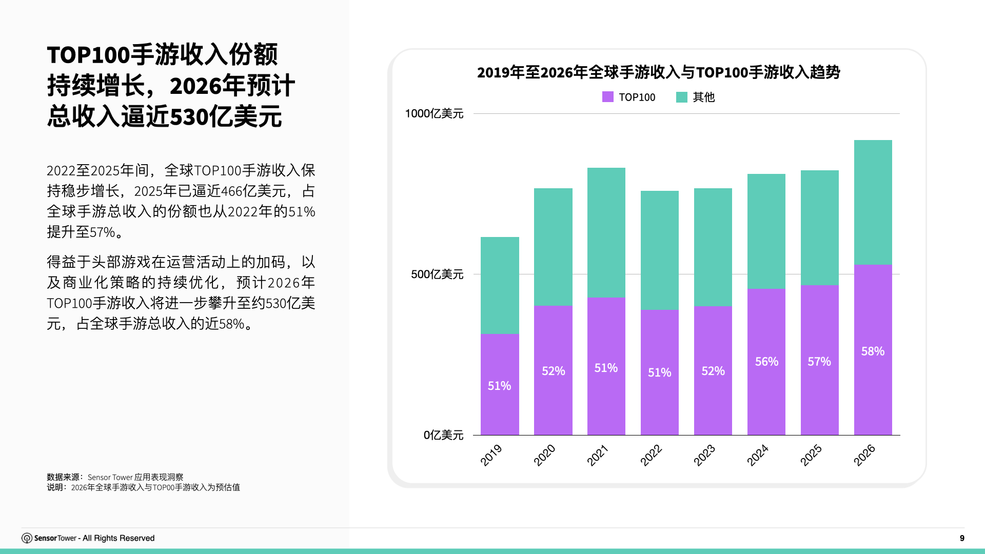 2026年TOP100手游收入将攀升至约530亿美元