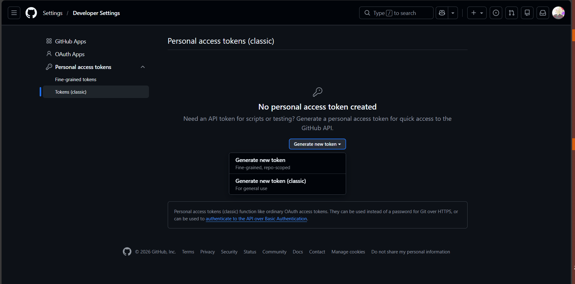 选择第三项的classic,点击页面中心的按钮,再选Generate new token(classic)