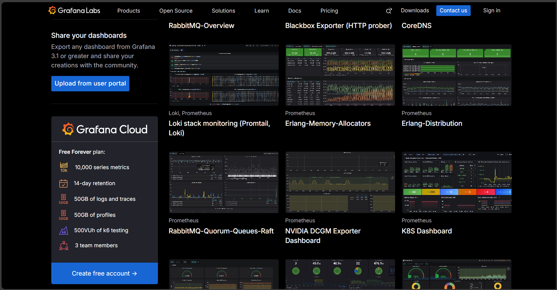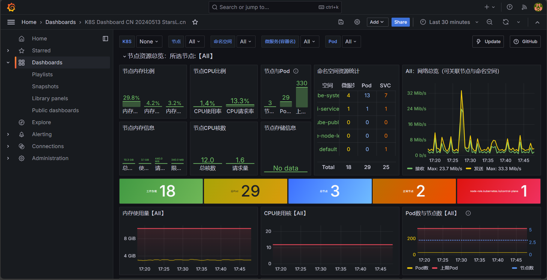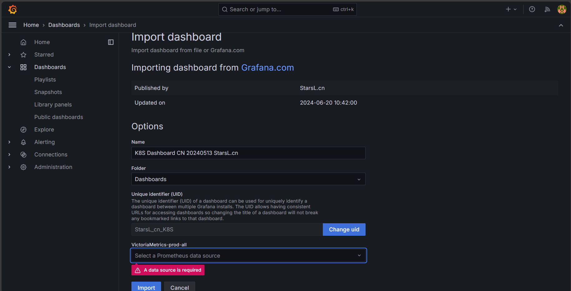 如图,选择一个仪表盘并点击,我选的是图中右下方的K8s Dashboard
