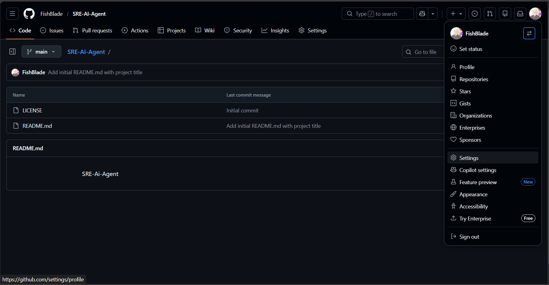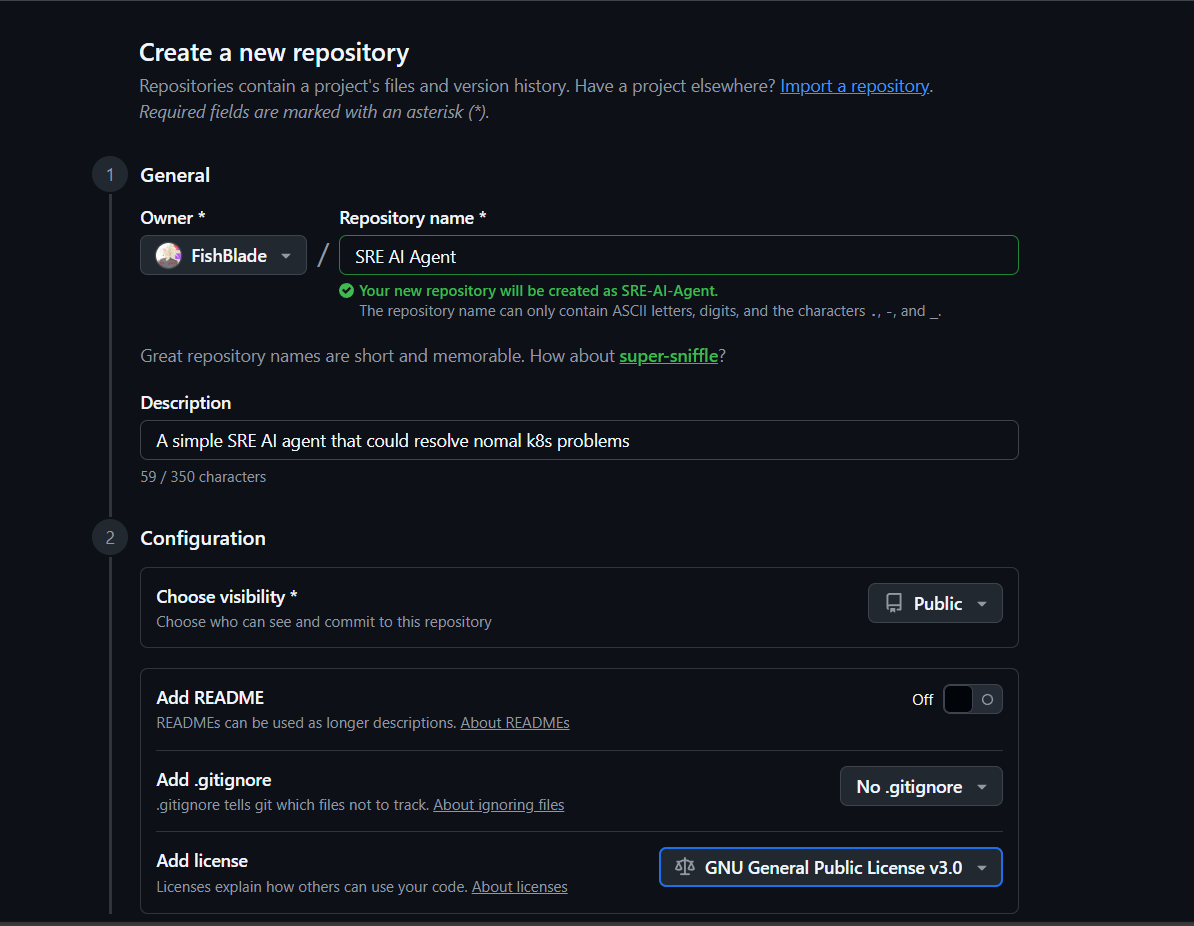 再cd到你的git目录下,我的是 https://github.com/FishBlade/SRE-AI-Agent